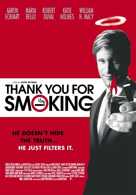 尼克(艾伦•艾克哈特 Aaron Eckhart 饰)是这个世界上最赚钱也最富有争议的行业――烟草业 的代言人。他每天不仅要像推销员一样用三寸不烂之舌去说服人们抽烟,还要不得不变着法子去对付禁烟团体、环保团体和科学团体的抗议,在政府和参议员中想尽办法为烟草业谋取最大利 益。 尼克还有两个知心朋友――为酒业代言的波利(玛丽亚•贝罗 Maria Bello 饰)和为军火业代言的鲍比(大卫•科恩查内 David Koechner 饰)。相同的行业性质让三人成为无话不谈的密友,经常在一起交流怎样对付环保团体等各种社团的抗议、如何在政府、参议员中周旋的诀窍。 在政治和商业互相交错的舞台上,他们上演了一出又一出好戏。收起